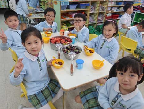 本校着重少糖、少盐和少油的烹调方法根据《健康饮食金字塔》的原则,食材以谷物类为主,配以适量的肉类,每天均有蔬菜、水果和奶类饮品或替代食物,确保儿童营养均衡和身体健康。本校为全日班提供午餐和茶点,用餐时间定时,并会展示餐单让家长查阅。