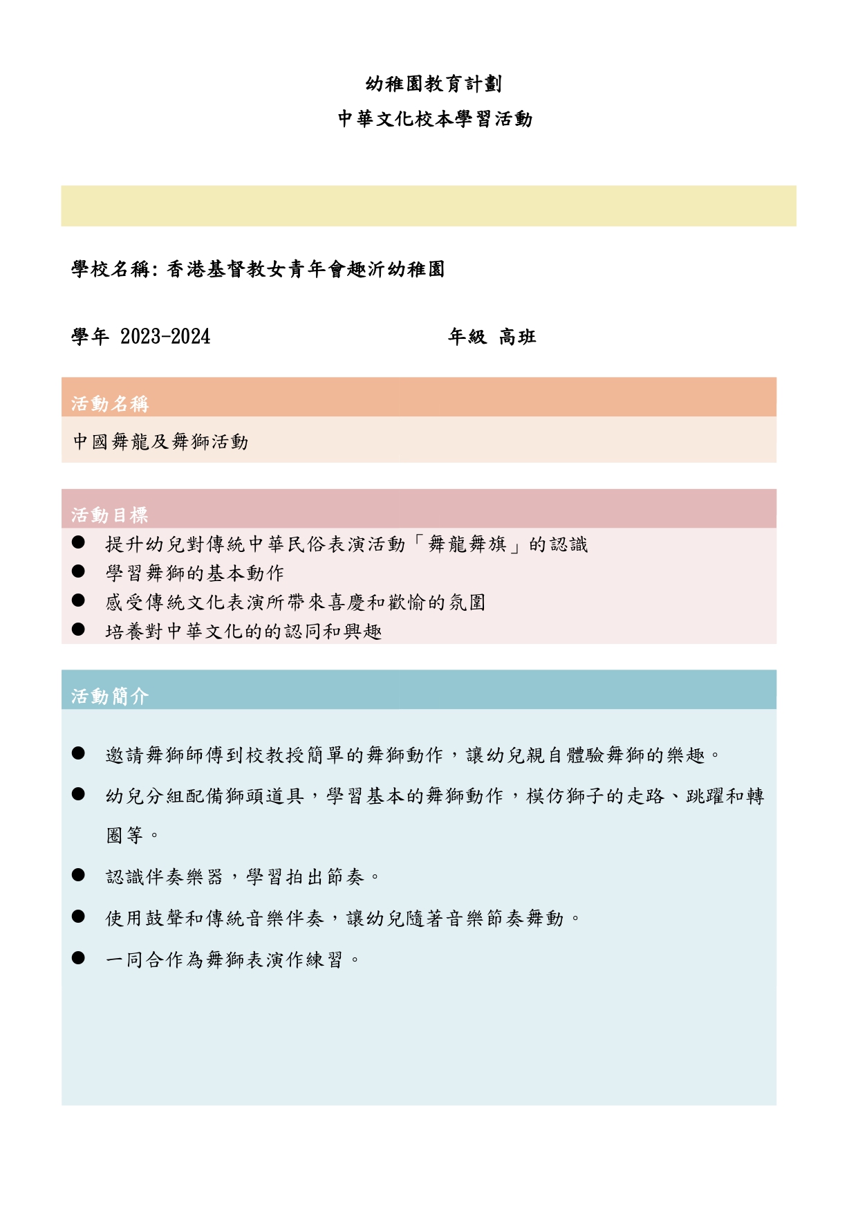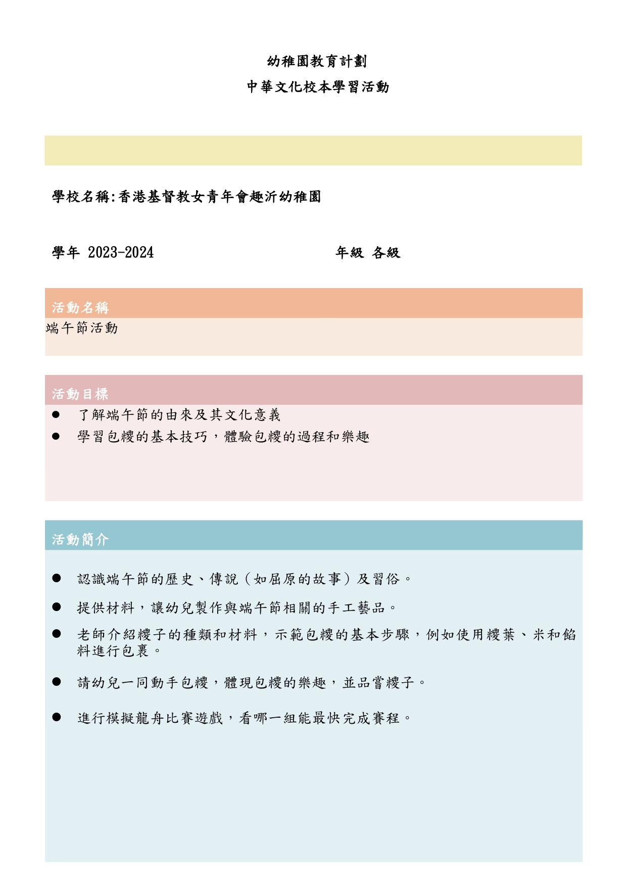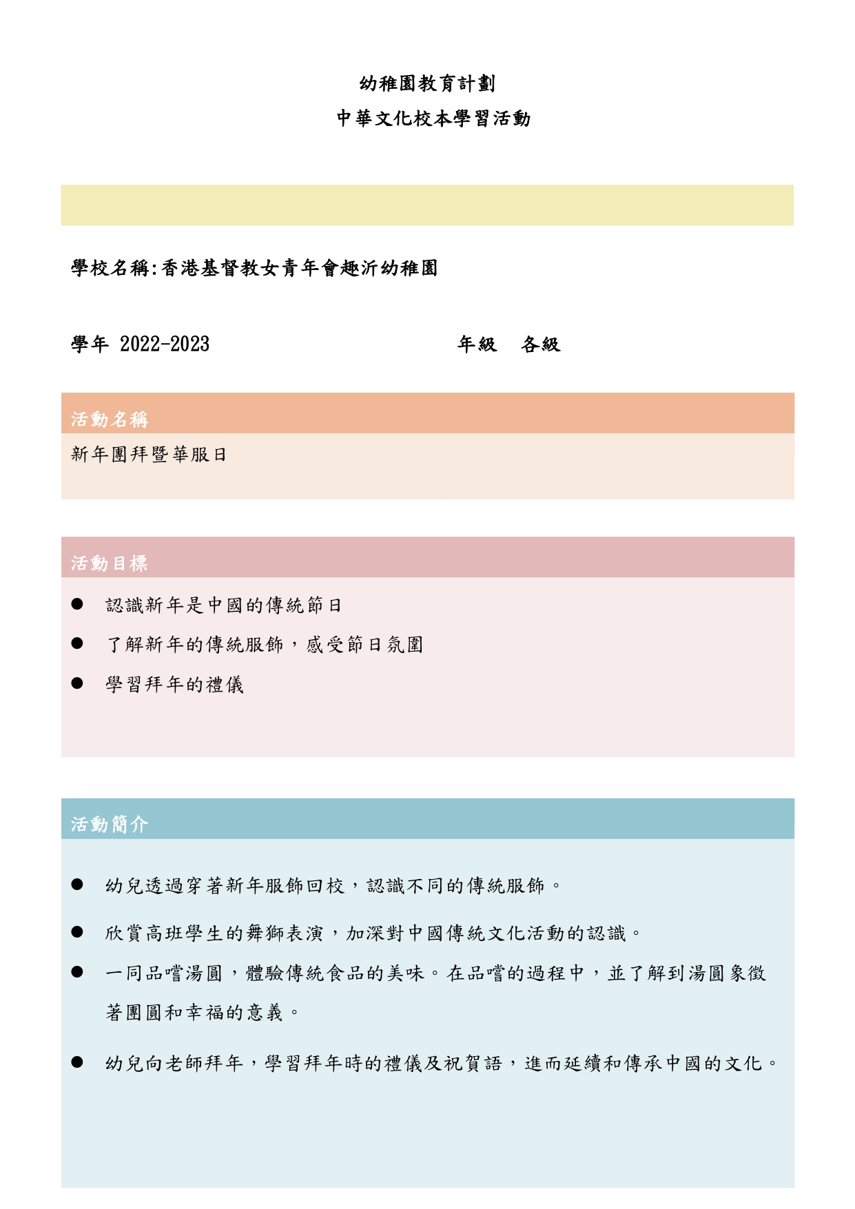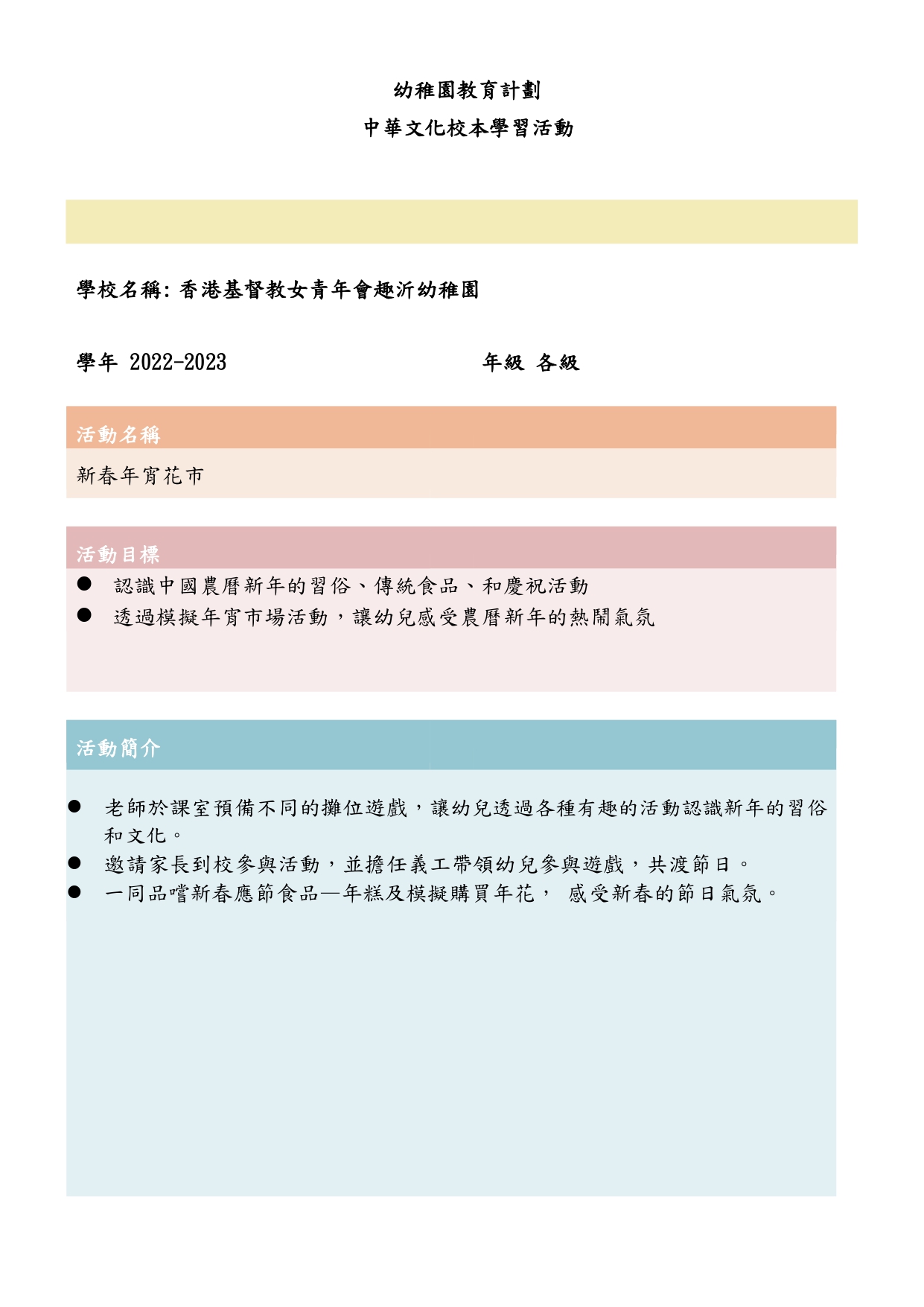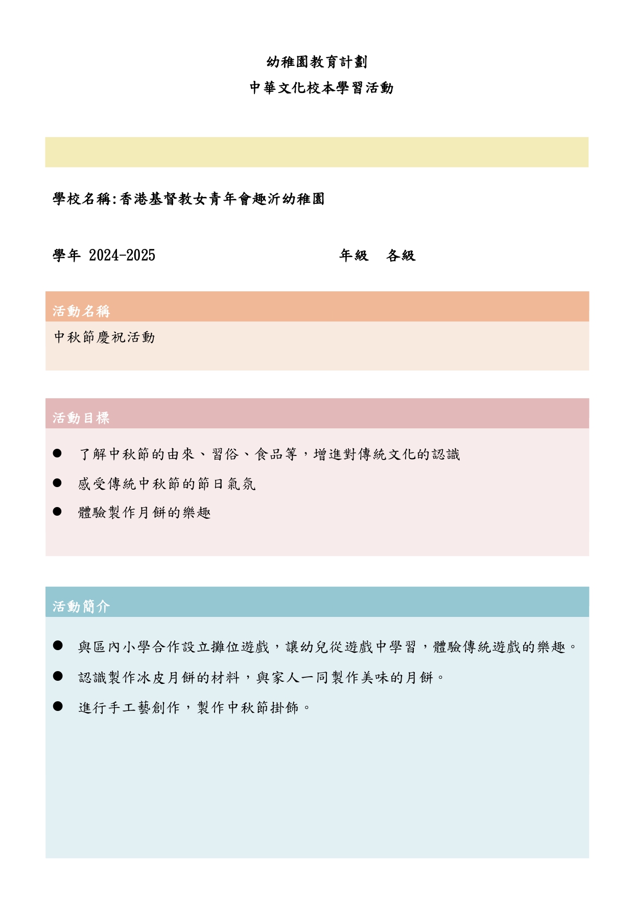 幼兒班報名須知